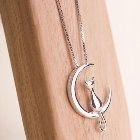 A Cat on Moon Necklace
